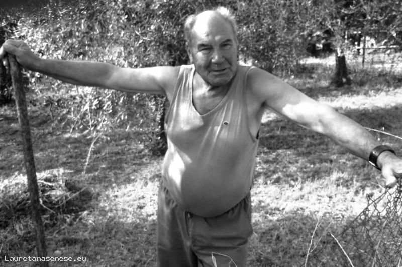 GIORGIO MALFETTI di 76 anni, dopo una vita passata a fare lo scalpellino, passa tutto il suo tempo libero da pensionato a curare un piccolo oliveto che tiene meglio di un giardino di casa. Una sana abitudine che lo ha a lungo mantenuto in salute, continuando a sentirsi una persona attiva e utile alla collettività. Bisognerebbe domandargli cosa risponderebbe a quei, giovani e meno giovani, che oggi affermano di non far niente perché manca il lavoro.