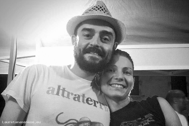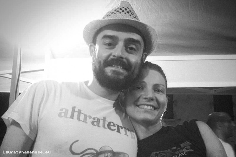 Due collaboratori dell'evento annuale di musica popolare: Altraterra che, in un momento di pausa, si lasciano fotografare: