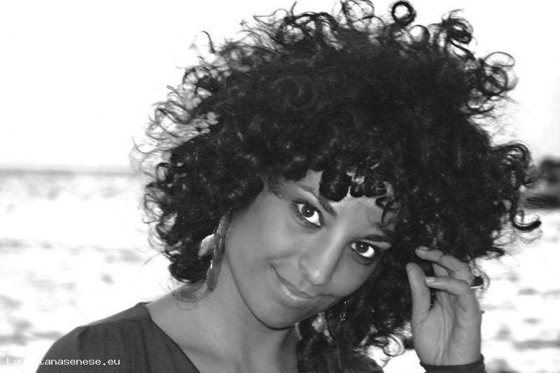 Sara Giusti, con gli occhi penetranti e la capigliatura addobbata al naturale.