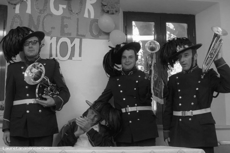 Alcuni ex bersaglieri locali hanno voluto festeggiarlo in divisa e con tanto di tromba.