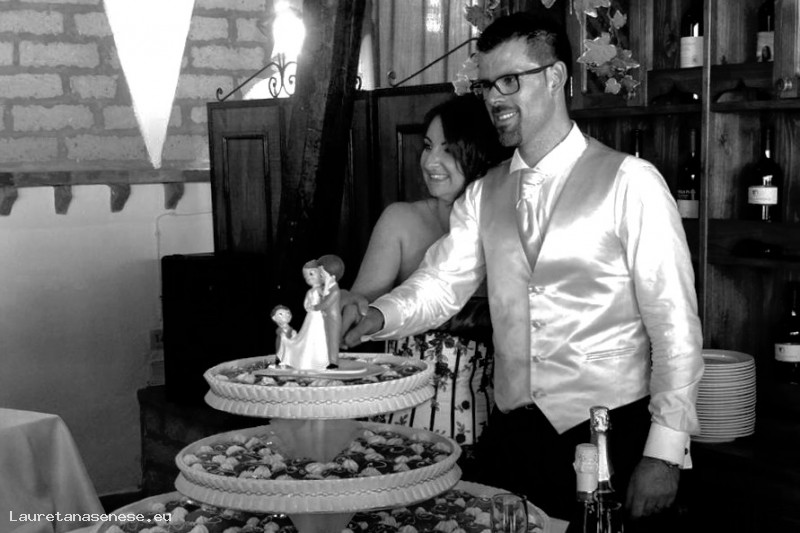 Da notare, l'originalità della statuetta degli sposi, che non sappiamo se fatta di zucchero o di coccio.