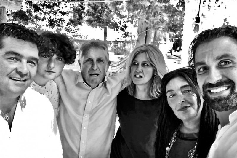 Tutti i giovani Ravaglia attorno allo zio Vincenzo, in occasione del pranzo per il battesimo si Federico, figlio di Alberto e Carolina.