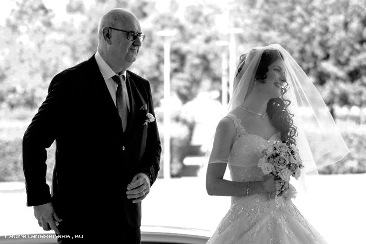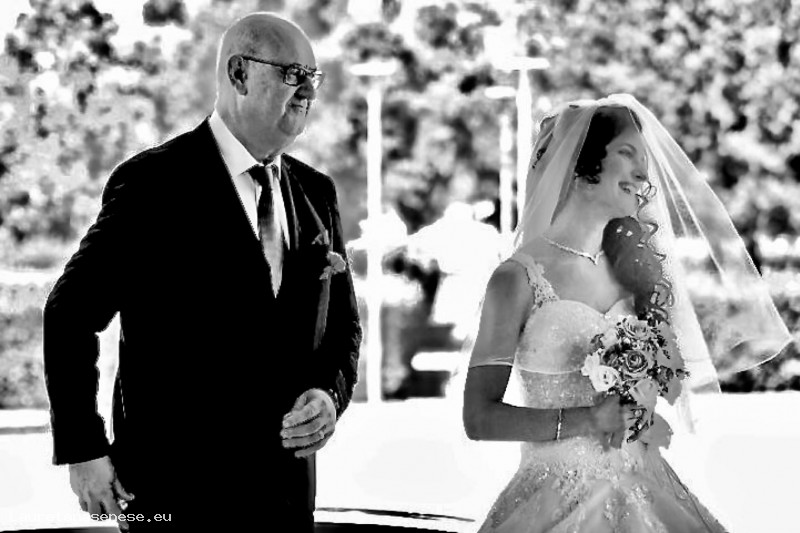 Nella foto, il padre Valfrido accompagna iln chiesa la figlia Chiara, il giorno del suo matrimonio.