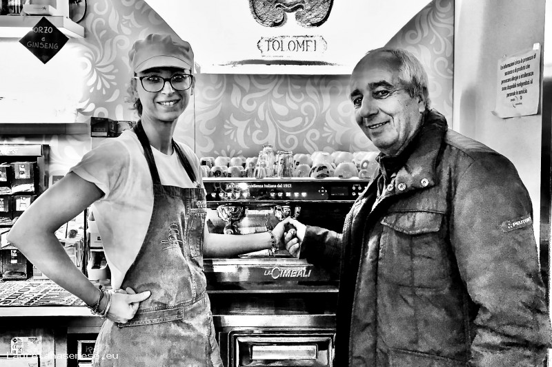 In un clima di allegria festaiola, Ignazio Badolato, pur di farsi fotografare con una delle belle "Garbate", gira dietro il banco e prova a fare il caffè, ma la barista, GARBATAMENTE, glielo impedisce.