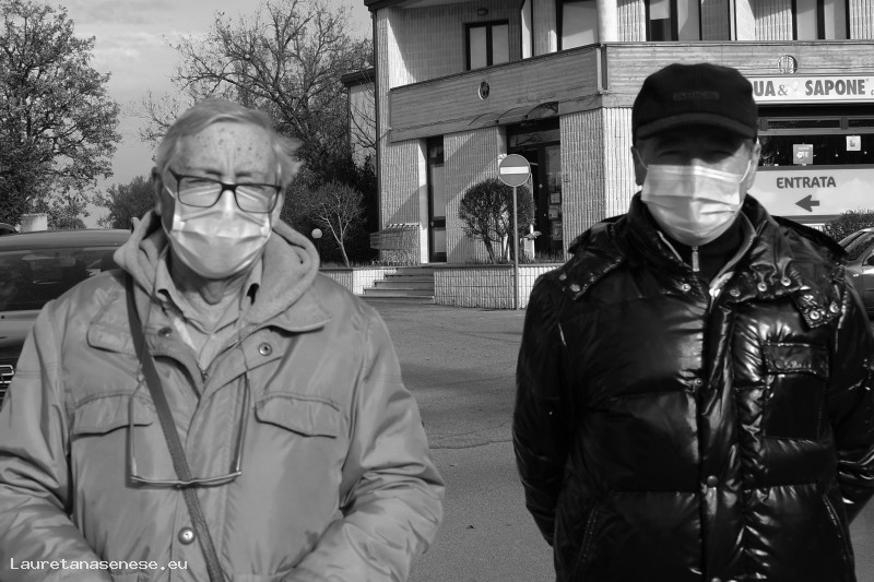 Due amici appassionati di calcio e tifosi della Juventus, scoperti a discutere di calcio, nonostante le mascherine. Nonostante la difficoltà di parlare, hanno espresso la certezza che anche in questo campionato saranno detinati a festeggiare la vittoria. Speriamo che qualcuno non "gli metta i bastoni fra le ruote".