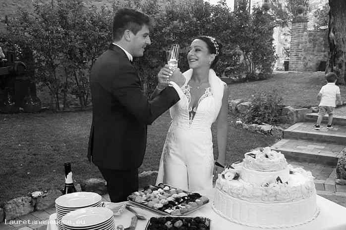 2020, Sabato 29 Agosto - Gli sposi brindano prima del taglio della torta Asciano