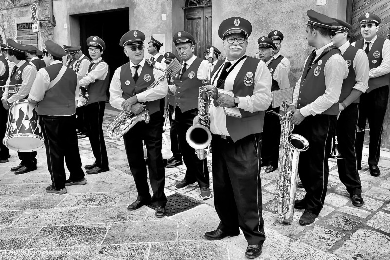 In prima fila il "Baffone" della banda con il suo sassofono.