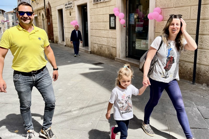 Francesco Cini e Laura Croci insieme alla loro piccolina, sono stati sorpresi a passeggiare in paese, la mattina del Giro d'Italia.