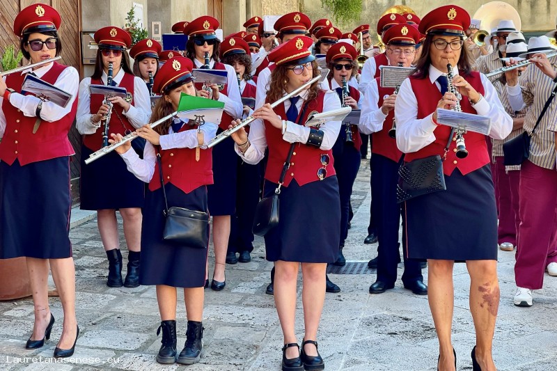 Le sonatrici della Filarmonica durante l'esecuzione dell'inno nazionale in Piazza del Grano. In prima linea i flauti e i clarini al femminile.