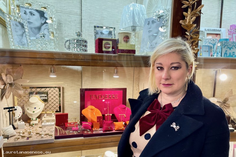 La bella e brava ILARIA, che con impegno e competenza ha sostituito il babbo Angiolo, augura a tutti un BUON NATALE, invitando i clienti ad andarla a trovare per scegliere regali originali.