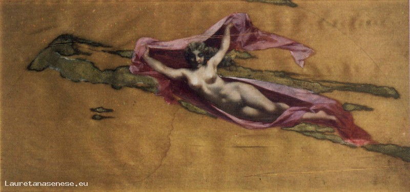 Tempera su stoffa, 23x48 cm. Incompiuto.