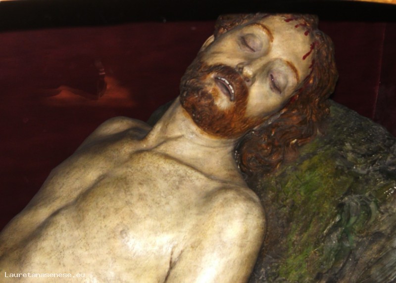 In fact, on the evening of Good Friday this sculpture is carried in procession through the streets of the town, followed by the statue of Our Lady of Sorrows.