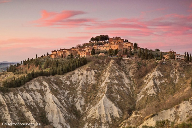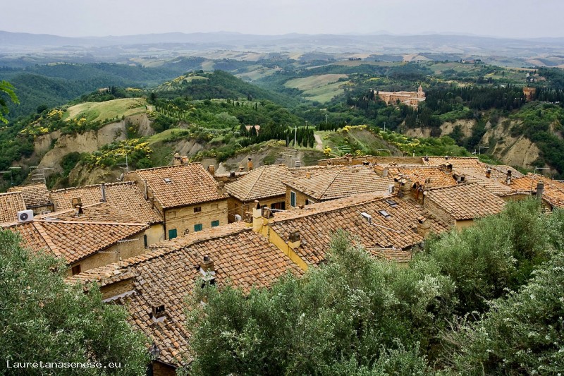 It is located above a high and unstable piaggia, previously covered with thickets, in the midst of which the monastery of Monte Oliveto maggiore was erected, included in the people and district of Chiusure, which is about one kilometer away.