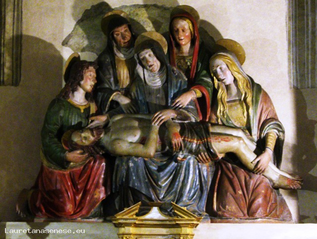 Questa composizione scultorea di terracotta dipinta si trova in una nicchia al di sopra dell'altare dell'Oratorio. Raffigura la Madonna che tiene tra le braccia il Cristo morto, circondata da San Giovanni e dalle tre Marie. Alcuni attribuiscono l'opera allo scultore cortonese Bernardino Covatti.