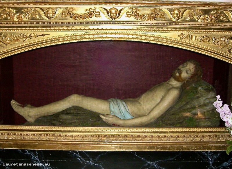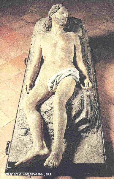 Scultura realizzata in gesso colorato per permettere una colorazione più vicina possibile al naturale e renderne più agevole il trasporto nella processione. Infatti la sera del Venerdì Santo questa scultura viene portata in processione per le vie del paese, seguita dalla statua della Madonna addolorata. La scultura fu donata dall'autore alla Compagnia dell'Oratorio di santa Croce nel 1869 come segno tangibile del permanente legame con il proprio paese di origine. Da allora la statua, a grandezza naturale, è custodita sotto l'altare maggiore dell'oratorio da cui viene prelevata solo il Venerdì Santo.