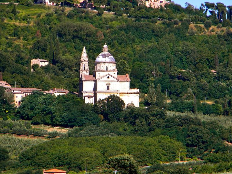 Consigliamo di partire dal Tempio di San Biagio, a Montepulciano, dirigendoci verso Pienza, lungo la