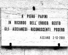 Lapide a ricordo di Pierino Papini e del suo eroismo