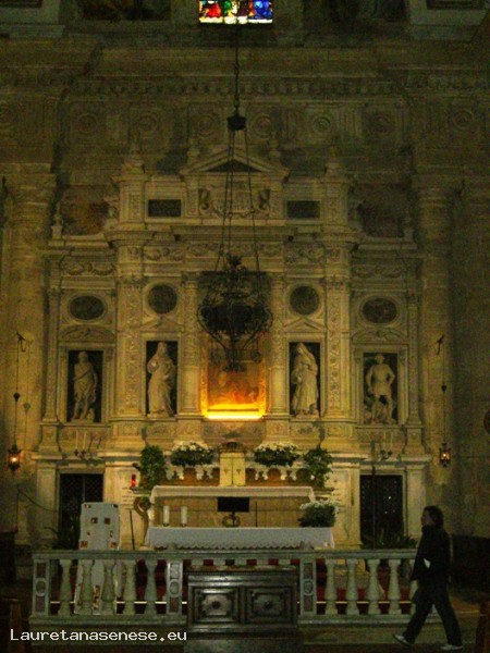 In front of the church stands the harmonious building of the Rectory, with two beautiful loggias, also designed by Sangallo, but built after his death in 1595. In the middle of the lawn, between the church and the Rectory, there is a pit anch ' it designed by Sangallo.