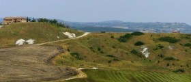 Fascinating journey among the limestone hills devoid of vegetation called mamelons, but that takes place on a track in clay accessible only in dry season. At the beginning of the dirt road to the castle of Leonina, on the right is a farmhouse near which you can park. In front of the house starts a dirt road that crosses the valley north of Leonina reaches the first limestone hills: continue turning right through the "mamelons" in a surreal atmosphere of a lunar type. After traveling a few hundred meters turn left to walk up to the top of the ridge from which you can see a wonderful view of Siena. Continue bearing right at the edge of an artificial lake that lies at the end of the valley. Shortly after you reach the dirt road and Leonina, keep to the right, you get the return path passing in front of beautiful houses and the castle. From here you face a long and steep descent that leads us to the point of departure.