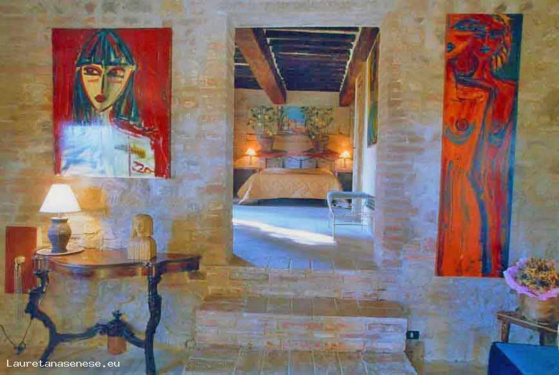 La Residenza d'Arte è una residenza d’epoca situata nel comune di Torrita di Siena un bellissimo paesino medievale a pochi km. da Siena, Pienza, Montepulciano e Cortona. E' un antico borgo in pietra del XIV secolo che sorge maestoso su una splendida collina interamente circondata da cipressi ed ulivi secolari, che fanno da cornice ad uno stupendo panorama sul centro storico di Torrita di Siena e la campagna circostante. Appena varcato il cancello di questa dimora storica si inizia un percorso artistico e poetico di perfetta fusione tra armonia della natura e armonia dell'arte contemporanea, sapientemente coniugate così da rendere la Residenza d'Arte una dimora di charme unica nel suo genere. La reception è collocata in un grande salone accogliente dove vecchie travi e mura in pietra vibrano in una danza cromatica emozionale insieme ad innumerevoli opere pittoriche, scultoree e di design artistico. Le forme e i colori avvolgono magicamente l'intero borgo in tutti gli ambienti interni ed esterni, nelle camere e nel parco circostante. Ci si ritroverà quindi a vivere il soggiorno in un luogo inusuale, lussuoso, che offre ai suoi ospiti un'atmosfera ricca di emozioni, conciliando il piacere dello spirito con il riposo del corpo e della mente. Il progetto di creare un gallery/hotel unico al mondo come la Residenza d’Arte nasce da un’idea e dalle passioni di Anna Izzo, scultrice, pittrice, ed interior designer conosciuta e quotata a livello internazione, la quale ha voluto offrire un’alternativa ai soliti hotel e relais senza personalità, realizzando in un luogo così antico e denso di storia un vero e proprio hotel/showroom che potesse emozionare e coinvolgere fortemente i Suoi ospiti grazie all’originalità ed energia delle Sue opere d’arte.
