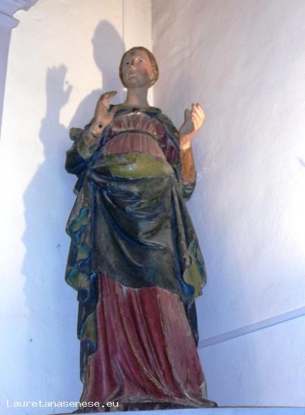 All'interno, su due nicchie, si trovano due statue lignee di Francesco Di Valdambrino rappresentanti l'Annunciazione, restaurate e portate all'originale policromia nel 1949. Prima erano considerate di scarsissimo pregio artistico; dagli studi successivi al restauro è emerso che sono di scuola senese, della prima metà del XV e da alcuni critici d'arte vengono attribuite a Francesco Di Valdambrino, mentre altri per un "affine del Valdambrino".