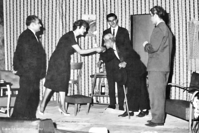 Dall'addobbo scenico, questa foto dovrebbe riferirsi alla stessa commedia rappresentata con Bruno Neri in bombetta, pronto per il matrimonio. Infatti anche a livello di attori in parte sono gli stessi.