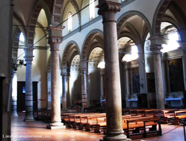 In questo luogo originariamente sorgeva la chiesa di San Clemente, la chiesa che trovarono i Serviti provenienti dal Monte Senario nel 1234 per edificare il loro convento. I lavori per la sua ricostruzione procedettero a rilento e nel 1533 sarebbe avvenuta la consacrazione a lavori non ancora terminati. I lavori strutturali interni terminarono nel 1537 con l'acquisto di quattro colonne per la divisione delle tre navate, mentre la facciata quattrocentesca non fu mai terminata e il campanile fu restaurato in tempi successivi. Lo stile richiama il tardo quattrocento fiorentino sebbene sia stata modificata in età barocca e poi stilisticamente rivoluzionata tra la fine dell'800 e gli inizi del '900 su progetto prima di Giuseppe Partini poi di Agenore Socini. L'interno, diviso in tre navate da colonne dotate di magnifici capitelli. Nei secoli XIX - XX, in occasione della ristrutturazione, numerosi artisti collaborarono alla ridecorazione delle cappelle, specialmente quelle absidali, quali Alessandro Franchi, Ulisse de Matteis, Giovanni Brunacci.