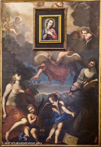 Sacred conversation with Sant'Agata and San Bernardino, made by Francesco Vanni in 1600. In this painting, the angel with the flute and Sant'Agata show a clear influence on the Florentine mannerist painter, while the other figures show clear similarities with others his works. The current location of the painting is at the bottom of the left wall of the Gothic hall, just before the sarcophagus with the remains of Teresa Francini Naldi.