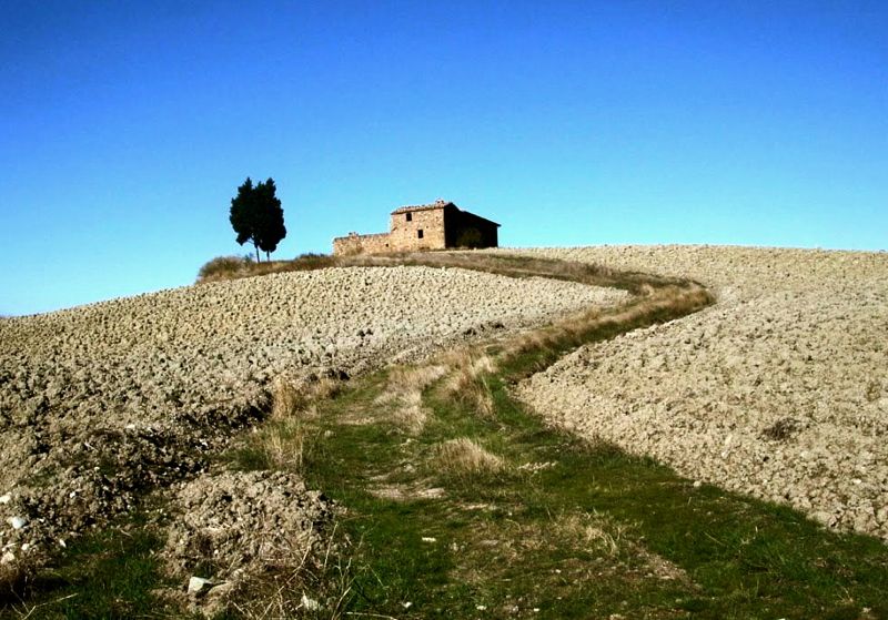 Made a hundred yards on the right of the first curve, you take a rather bumpy dirt road that comes down the road that connects Asciano in Lucignano d'Arbia going from Montauto.
