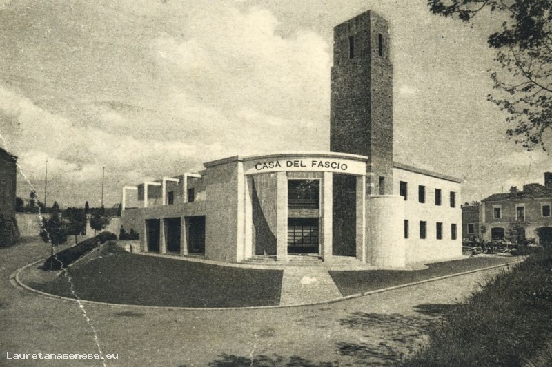 Costruita su progetto dell'ing. Armando Sabatini, la Casa del Fascio con il cinematografo interno e lo stadio "G. Marconi" sul retro venne inaugurata il 27 novembre 1937, alla presenza del ministro Starace. Nel 1948, cancellate le iscrizioni e le figurazioni militariste che ornavano il corpo dell'arengario, venne adibita a Casa del Popolo.