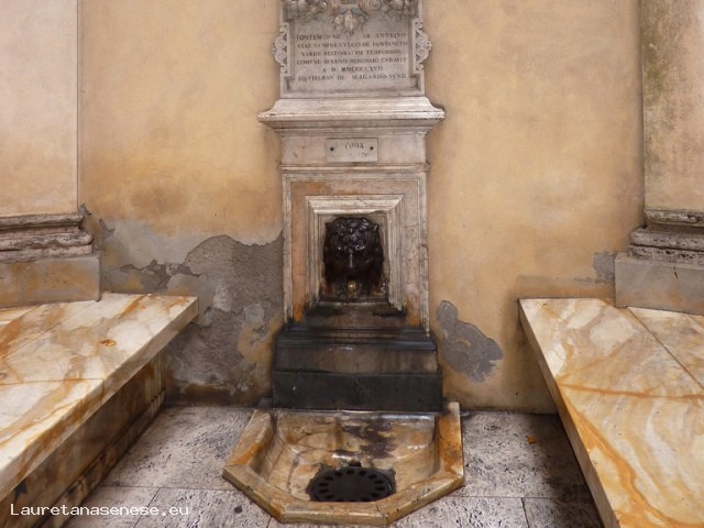 La fontana si trova in Vallerozzi subito dietro le Logge del Papa. E' stata realizzata sfruttando una nicchia esistente fra vari edifici ed utilizzando materiali pregiati: marmi policrimi, travertino e rame.