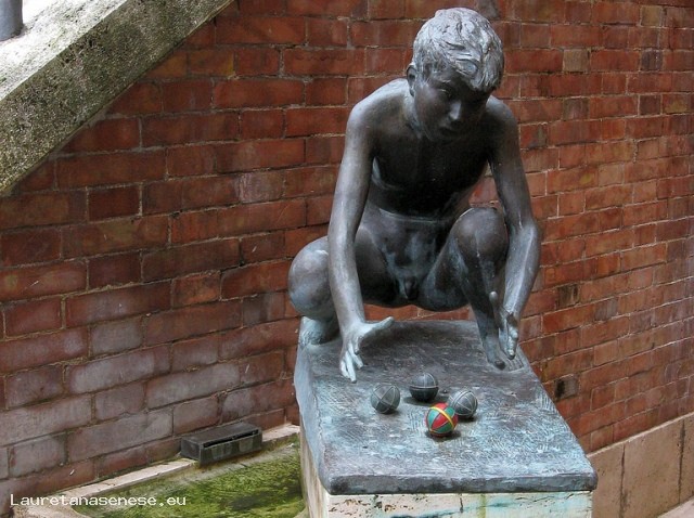 La fontanella del Drago, rappresenta un ragazzo accovacciato che gioca con delle biglie di cui una dipinta con ii colori della contrada. L'opera è stata realizzata nel 1977 dallo scultore Vico Consorti. Il richiamo alla contrada, oltre ai colori della biglia deriva dall'iscrizione “L'amore di Contrada per l'arte di Vico Consorti affida ai dragaioli che nasceranno il ricordo dei grandi Priori Mario Calamati e Alberto Rossi” sulla fontana stessa.