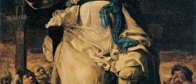 Purchased by the Monte dei Paschi di Siena in 1984, the painting originally belonged to the collection of Florence Gerini: lower left, above the sheet that protrudes from the stage on which sits the charlatan, appear the sign ("In Siena Bernardino Mei Painter ") and the probable date of execution of the canvas (you can imagine will be the year" 1656 "). The unusual iconography and the originality of the subject provide the modern viewer a true slice of customs, traditions and beliefs that were to characterize the social context of Siena - Siena and not only - in the middle of the seventeenth century. The old charlatan sits on a wooden stage surrounded by the "tools" of their trade, bottles and glass jars containing healing potions from unlikely. The view from the bottom seems to accentuate the grandeur of the ambiguous character whose body mass is amplified by overlapping and continuous dall'ingolfarsi countless layers of clothes. The performance of the mysterious healing takes place within the walls of the city of Siena, as the profile of the Mangia tower that is visible at the bottom, on the left of the picture. The thick beard new philosopher, look sharp, piercing and the peremptory gestures arouse fearful amazement of the crowd that gathers cautious at the foot of the stage, not everyone seems to still suffer the dark influence of the arcane character: among the onlookers stunned fits even the skeptic who, staring at the old bearded, suspicious sniffs the contents of a small vial. The adoption of a treatment luministic strongly opposed, characterized by the juxtaposition of large areas of deep shadows and bright with wrap-around help to accentuate the suspended atmosphere and disturbing that circulates inside painting, on which rests the dark mass of stormy sky.