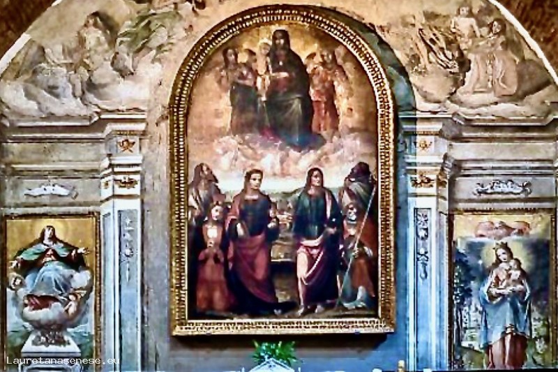 Palace of the bottle of Sodoma, refining the Madonna col Bambino, angeli e santi è posta dietro l’altare sopra il coro lineo. The opera is inserted into the interior of a fine architecture, drawn a fresco, on the scene of the Marian scene: the Assunzione della Vergine and the Incoronazione di Maria.