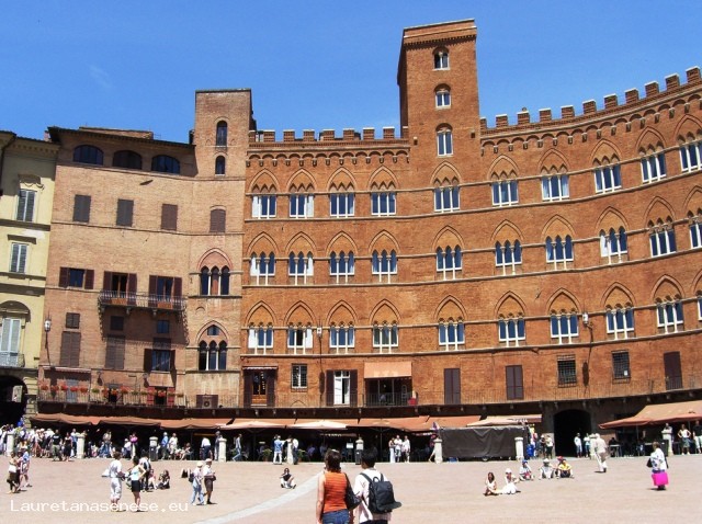 Piazza del Campo è, storicamente, la piazza principale della città di Siena. Unica per la sua particolare e originalissima forma a conchiglia, è rinomata in tutto il mondo per la sua bellezza ed integrità architettonica e per essere il luogo in cui due volte l'anno si svolgono i due Palii. Lo spazio che sarebbe diventato la piazza attuale era, alle origini di Siena, un terreno bonificato per consentire il deflusso delle acque piovane. Il nucleo della città in formazione si trovava più in alto, nella zona di Castelvecchio e il futuro "Campo" era uno spazio per i mercati, appena laterale rispetto alle principali strade di comunicazione che passavano per la città e situato esattamente ad un crocevia. La storia della piazza si intreccia fortemente con quella della costruzione del palazzo Comunale o palazzo Pubblico, che vi si affaccia. Fino al 1270, con il Governo dei Ventiquattro, lo spazio della futura piazza viene usato per fiere e mercati. Caduto questo governo degli aristocratici, con il Governo dei Nove si comincia a pensare a una sede "neutra" per il governo della città. Questo nucleo del Palazzo Comunale, darà anche impulso ad una consona sistemazione della piazza antistante. La pavimentazione della piazza inizia nel 1327 e termina nel 1349. Ancora oggi, la parte centrale è pavimentata in modo analogo, con la suddivisione in nove spicchi a memoria del Governo dei Nove. Durante gli anni della sua costruzione, il governo di Siena ha via via emanato leggi al fine di uniformare facciate, spazi, fronti architettonici e di allineare il profilo e il perimetro dello spazio. La piazza è famosa anche perché accoglie due volte all'anno, esattamente il 2 luglio e il 16 agosto, il Palio delle Contrade. Si tratta di una corsa di cavalli unica al mondo che vede confrontarsi le diciassette storiche contrade che compongono la città toscana.
