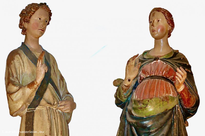 Due statue lignee di Francesco Di Valdambrino rappresentanti l'Annunciazione: la Vergine Maria e l'Angelo Annunziatore (prima metà del XV secolo).