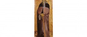 Together with the stick and the bell, attributes of the Saint's iconography, Antonio Abate holds the circulum precatorium in his left hand, an object that for its shape and function can be assimilated to the rosary of the modern era. As the structure of the wooden support suggests, the table originally constituted the right side panel of a polyptych with several compartments: in the left thickness of the painting are in fact the traces of the holes in which the pegs were inserted which served as connecting elements between the individual panels of the pictorial complex. In consideration of the particularity of the stylistic features, the painting has long been considered by critics as one of the panels of the Polittico dell'Arte della Lana, a masterpiece created by Sassetta around 1426 and still visible in the 18th century Chapel of the Wool Art attached to the ancient Sienese church of San Pellegrino alla Sapienza: according to the accurate description given in the eighteenth century by the abbot Gian Girolamo Carli, the altarpiece - later dismembered and partly dispersed - was part of a panel depicting Sant'Antonio Abate. In recent years this has lost consistency from the moment it was identified, as a sure pendant of Sant'Antonio, a completely analogous table in the format and decoration with punches of the saint's halo, depicting San Nicola di Bari purchased in 1981 by The Louvre Museum in Paris.The painting, in the spirit that is proper to the painter's art, is woven from a dense weave of spatial suggestions: the soft and suffused chiaroscuro, which builds the turned volume of the figure, reflects the wise glimpse of the rosary and the handle of the saint's staff which, in turn, indicate the directions within which the space of the composition develops.
