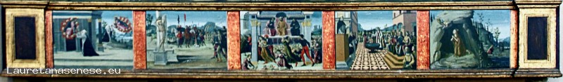 Predella collocata sotto la tavola: Adorazione del Bambino di Francesco di Giorgio Martini.