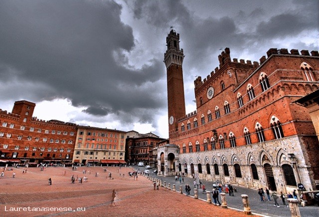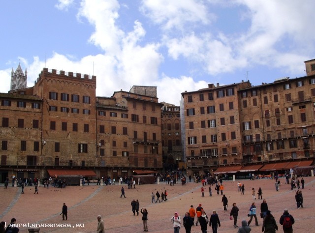 Piazza del Campo è, storicamente, la piazza principale della città di Siena. Unica per la sua particolare e originalissima forma a conchiglia, è rinomata in tutto il mondo per la sua bellezza ed integrità architettonica e per essere il luogo in cui due volte l'anno si svolgono i due Palii. Lo spazio che sarebbe diventato la piazza attuale era, alle origini di Siena, un terreno bonificato per consentire il deflusso delle acque piovane. Il nucleo della città in formazione si trovava più in alto, nella zona di Castelvecchio e il futuro "Campo" era uno spazio per i mercati, appena laterale rispetto alle principali strade di comunicazione che passavano per la città e situato esattamente ad un crocevia. La storia della piazza si intreccia fortemente con quella della costruzione del palazzo Comunale o palazzo Pubblico, che vi si affaccia. Fino al 1270, con il Governo dei Ventiquattro, lo spazio della futura piazza viene usato per fiere e mercati. Caduto questo governo degli aristocratici, con il Governo dei Nove si comincia a pensare a una sede "neutra" per il governo della città. Questo nucleo del Palazzo Comunale, darà anche impulso ad una consona sistemazione della piazza antistante. La pavimentazione della piazza inizia nel 1327 e termina nel 1349. Ancora oggi, la parte centrale è pavimentata in modo analogo, con la suddivisione in nove spicchi a memoria del Governo dei Nove. Durante gli anni della sua costruzione, il governo di Siena ha via via emanato leggi al fine di uniformare facciate, spazi, fronti architettonici e di allineare il profilo e il perimetro dello spazio. La piazza è famosa anche perché accoglie due volte all'anno, esattamente il 2 luglio e il 16 agosto, il Palio delle Contrade. Si tratta di una corsa di cavalli unica al mondo che vede confrontarsi le diciassette storiche contrade che compongono la città toscana.