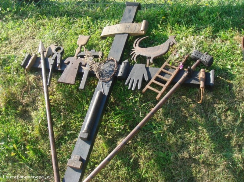 Fresco dedicated to the Archangel Saint Michael ( Altar on the left) Fresco dedicated to the Holy Trinity (XVIth century) (Altar on the right) Wooden sculpture of Jesus Dead by Sammicheli Papier mache’ statue representing the Grieving Madonna Crucifix of Jesus Crucifix of the Passion of Christ Six ancient lanterns for processions Church of the Company of the Holy Cross in Farnetella
