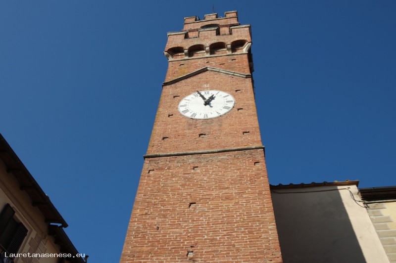 Questa elegante costruzione è alta 25 metri, a metà sotto il primo ordine è posto il castello di orologeria. Dopo un duplice ordine di merli, si erge il castello in ferro battuto che sostiene l’artistica Campana la quale culmina con la banderuola crociata a segnalazione delle variazioni atmosferiche. La costruzione è una delle più eleganti tanto che Pienza e Buonconvento ne imitarono la struttura. Essa sorge svelta, proporzionata, svettante sui tetti circostanti con il compito di avvertire la comunità, con la sua squillante campana, che il tempo passa e con esso le miserie del mondo.